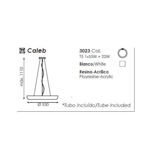 CALEB PENDANT 1L WHITE Ø53X111 CM T5 1X55W +22W