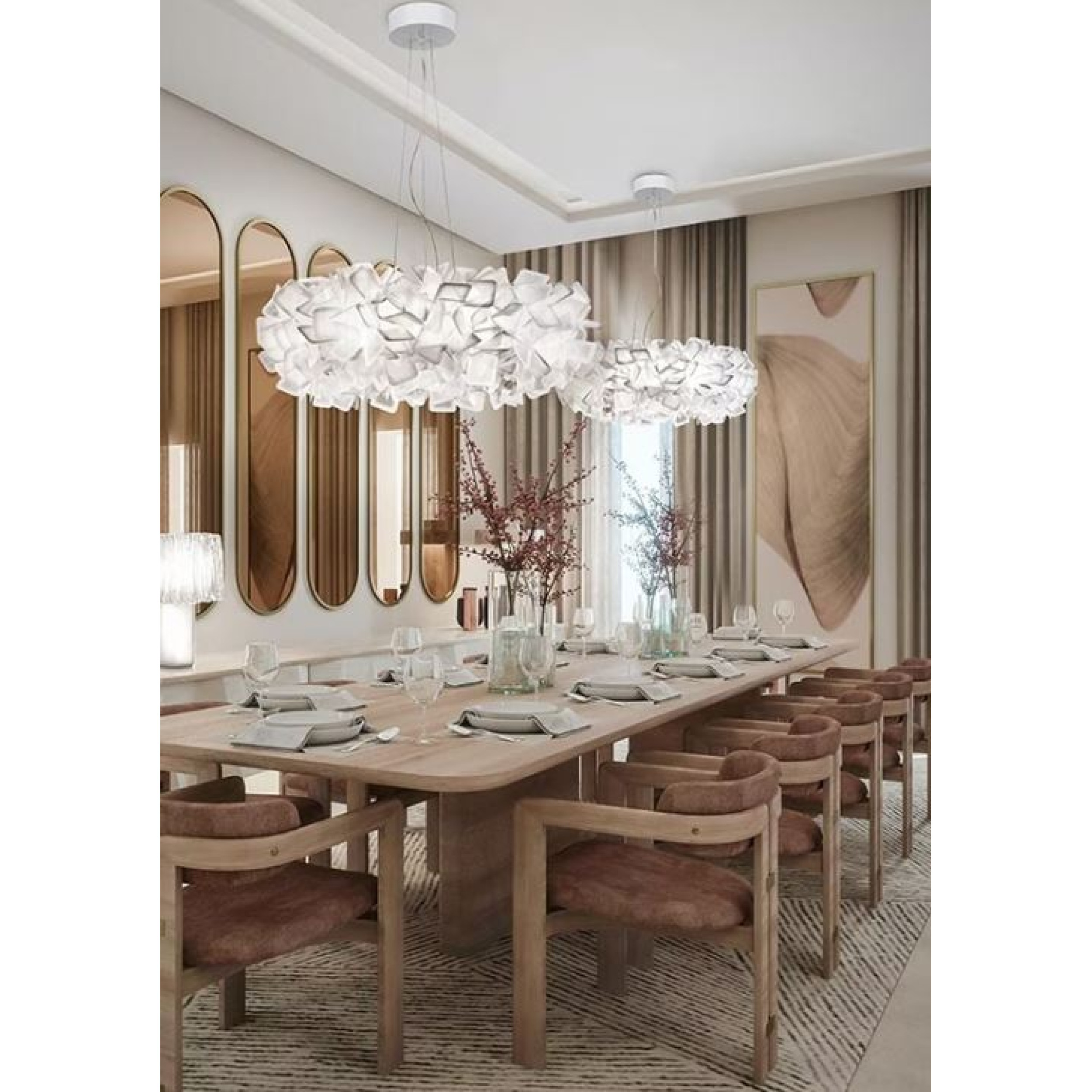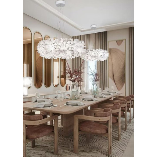 Clizia, yansımalar ve şeffaflıkların mükemmel bir dengesini yaratmak için bir araya getirilmiş bir dizi formdan oluşuyor. Lamba, sabah güneşinin ilk değişen ışınlarını yakalayan bir bulutu veya ışık ve gölge oyunlarını filtreleyen bir ağaç tepesini andıran doğal formları benimsemiş. Mevcut tüm versiyonlar, estetiği işlevsellikle bir araya getirerek, tavana (askılar ve aplikler için) veya metal tabana (masa ve ayaklı lambalar için) bağlanan manyetik bir sisteme sahip. Clizia, bir mekanı boğmadan bir manzaraya dönüştürüyor.