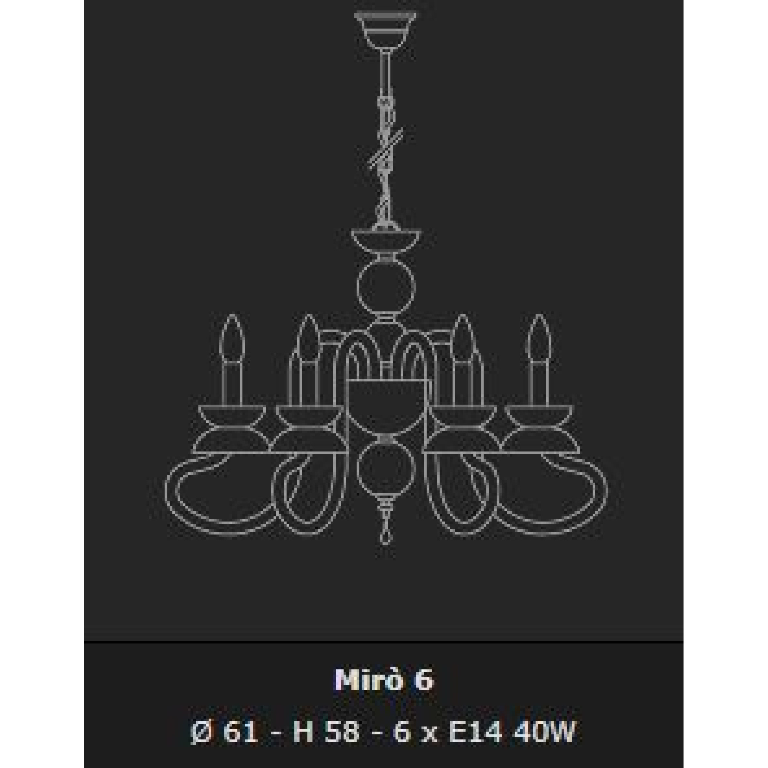| Web Link (EN) | MIRO CHANDALIER 6L CLEAR CHROME Ø61X58 CM E14 6X40W |