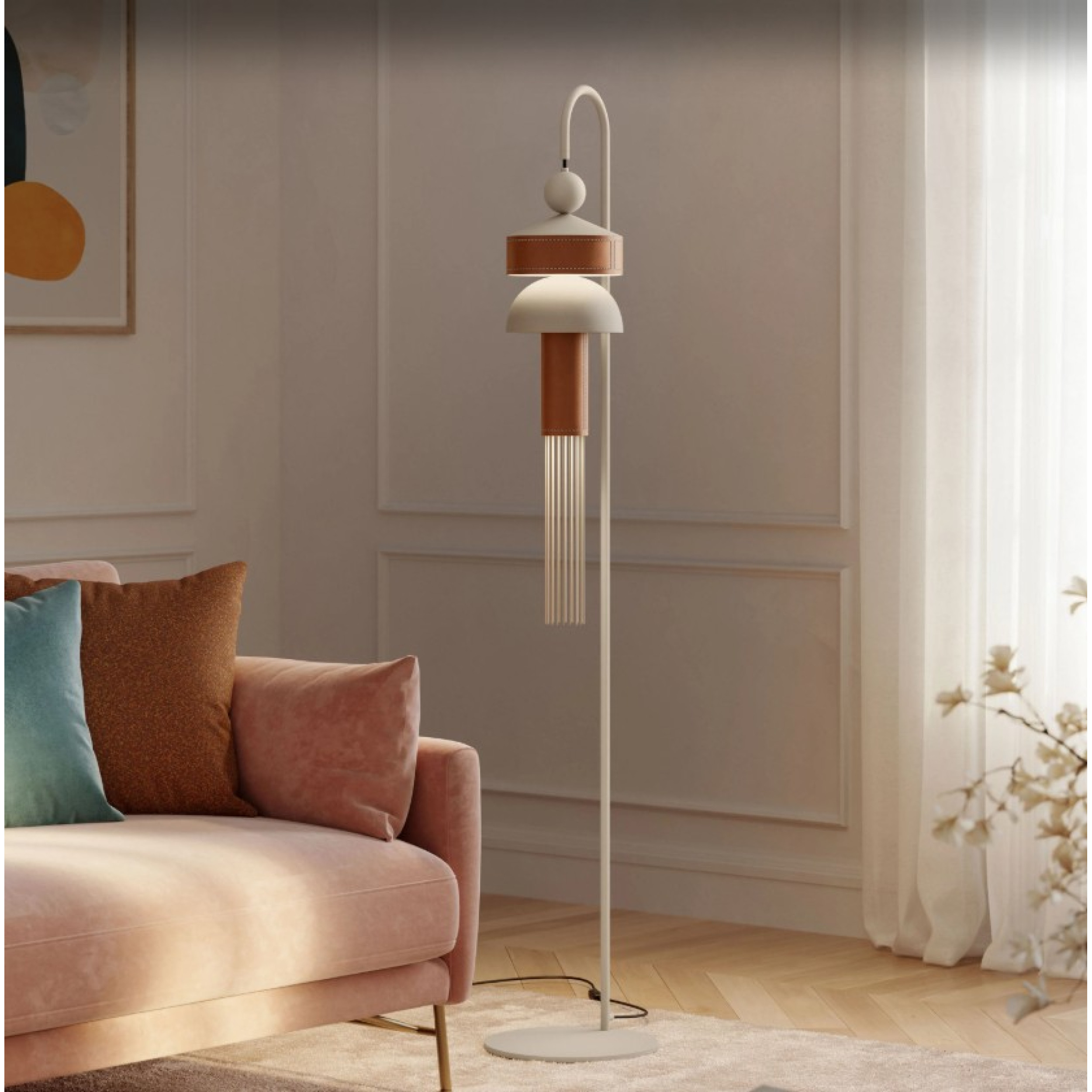 NAPPE FLOOR LAMP 1L GREY BROWN LEATHER Ø30X165 CM LED 9W 3000K