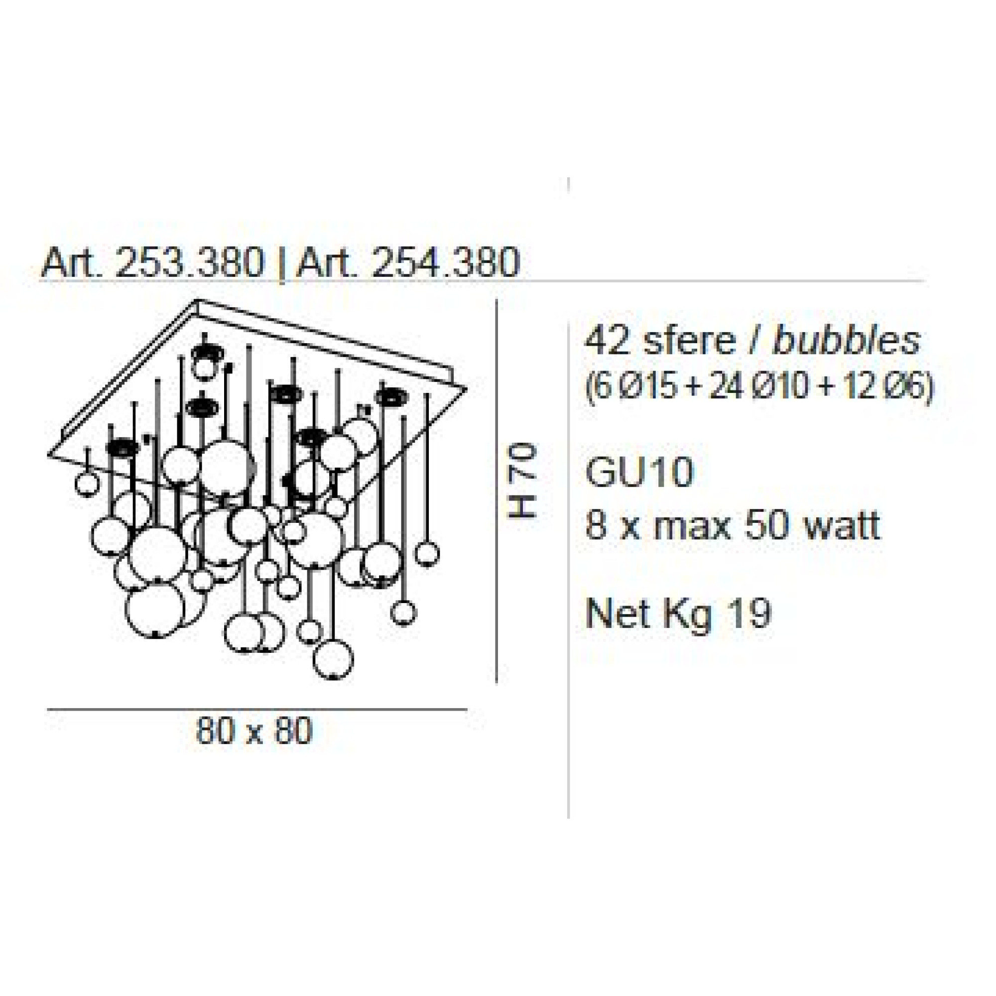 BOLERO CEILING LAMP 8L CRYSTAL-WHITE Ø80X70 CM GU10 8X50W