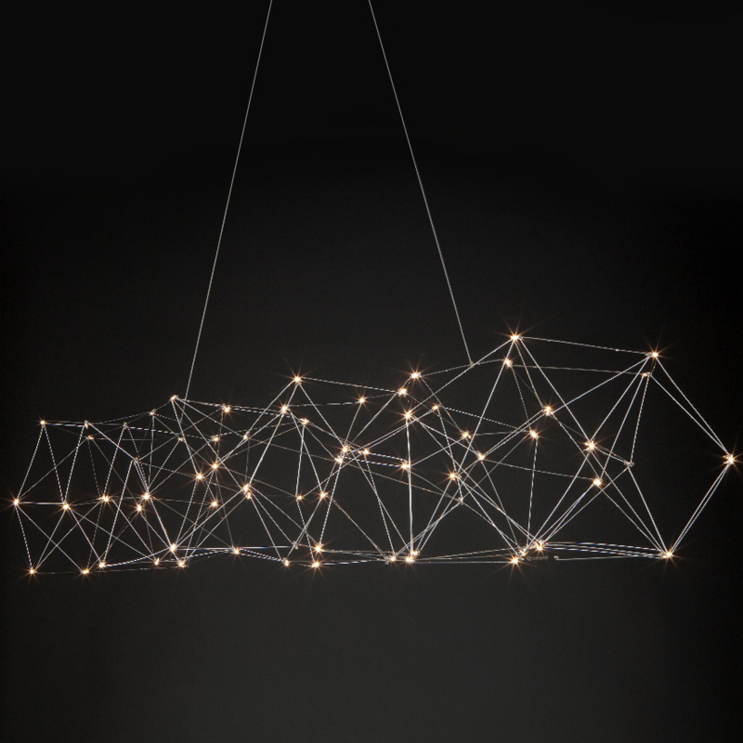 Cosmos rastgele görünüyor ancak yine de uyumlu bir görünüme sahip. Rastgele yerleştirilmiş LED devre kartları ve ince metal çubuklar, bu aydınlatma armatürünün iki temel unsurudur. Lambaya yapısını ve şeklini kazandırırlar. Devre kartlarının her iki yüzünde de LED’ler bulunur; ışığın üçte ikisi aşağıya, üçte biri yukarıya yönelir. Her Cosmos el yapımıdır, bu da her modelin benzersiz olmasını sağlar.