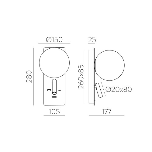 KIN APLİK SİYAH Ø15X17,7X28 CM LED 8W+3W 2700K