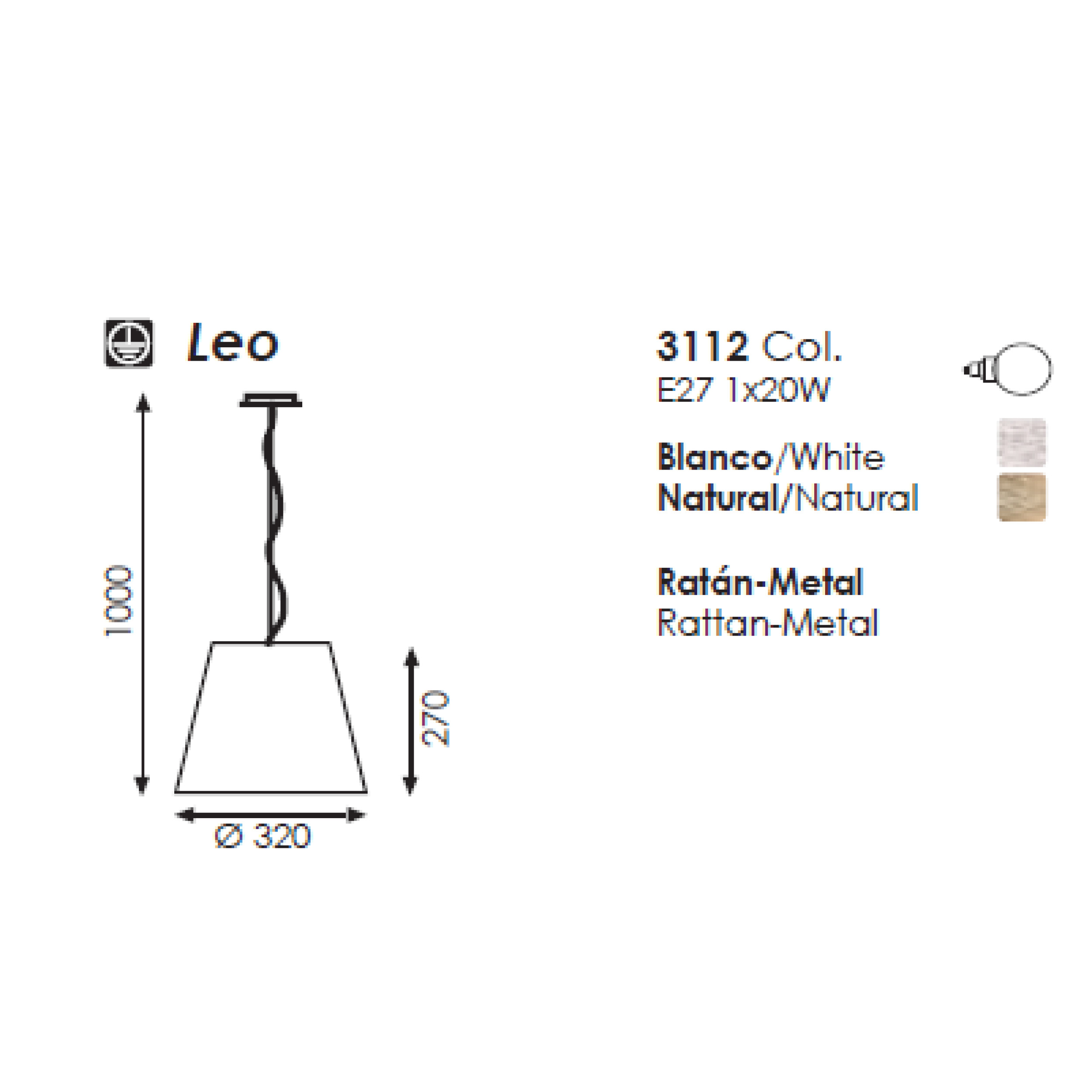 LEO PENDANT 1L WHITE Ø32X100 CM E27 1X20W