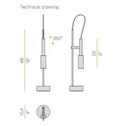 TUBINO MASA LAMBASI TITANYUM Ø10.4X48 CM LED 6.5W 2700K